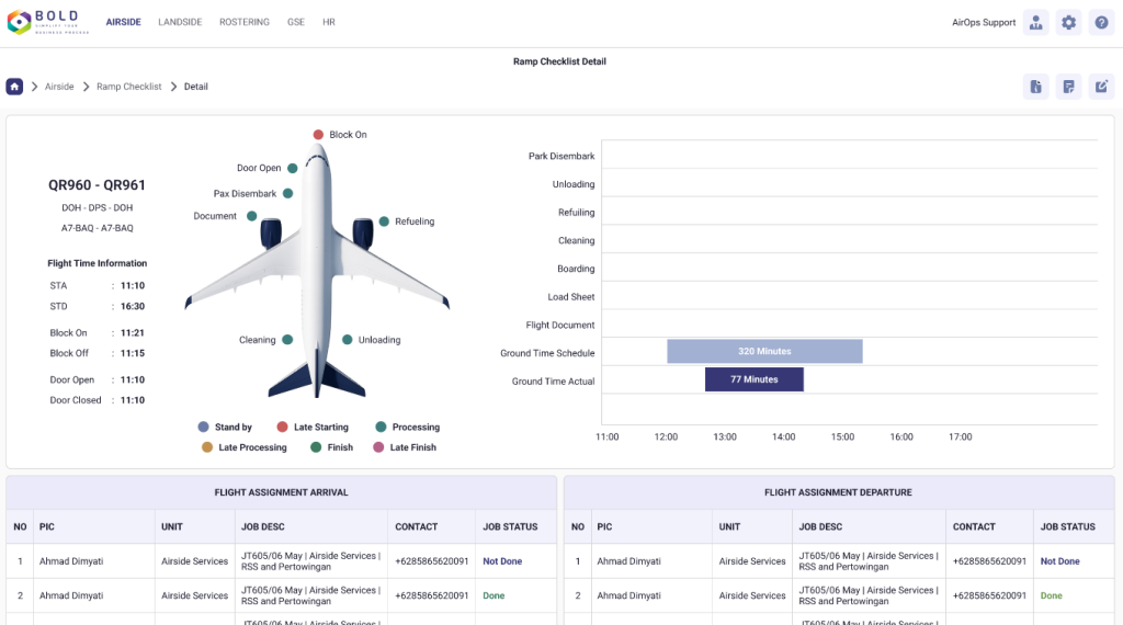 Ramp Dispatcher is your central hub for coordinating all ground handling activities. From aircraft arrival to departure, track every task, assign resources, and monitor progress in real-time to ensure smooth operations.